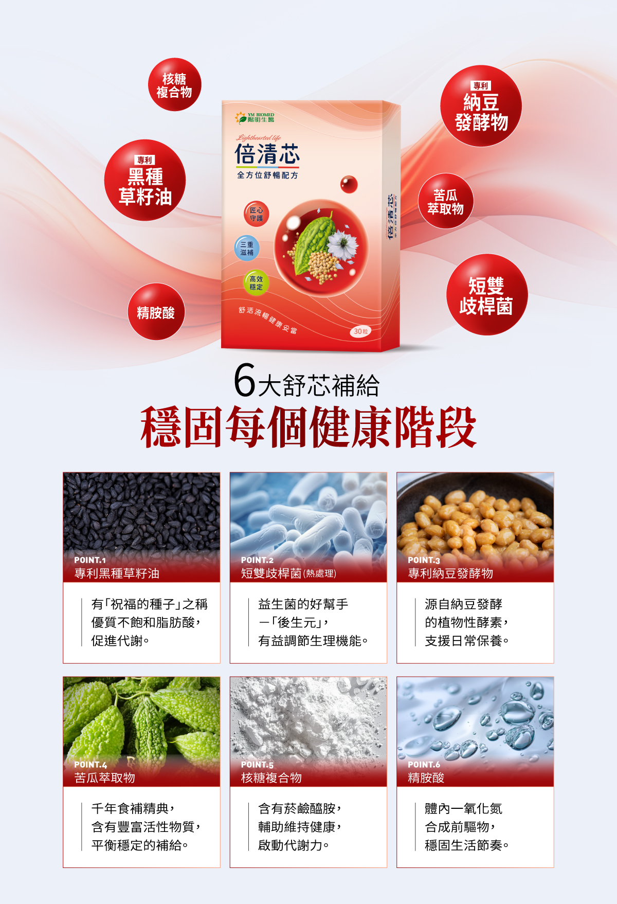 添加6大舒芯補給,穩固每個健康階段